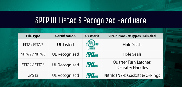 Sierra Pacific Engineering and Products (SPEP) proudly carries a variety of UL Recognized and UL Listed components. These parts and hardware ensure the highest degree of safety and performance, providing our customers with peace of mind and a competitive edge. Contact us today to learn more about our selection of UL certified parts and pricing.
